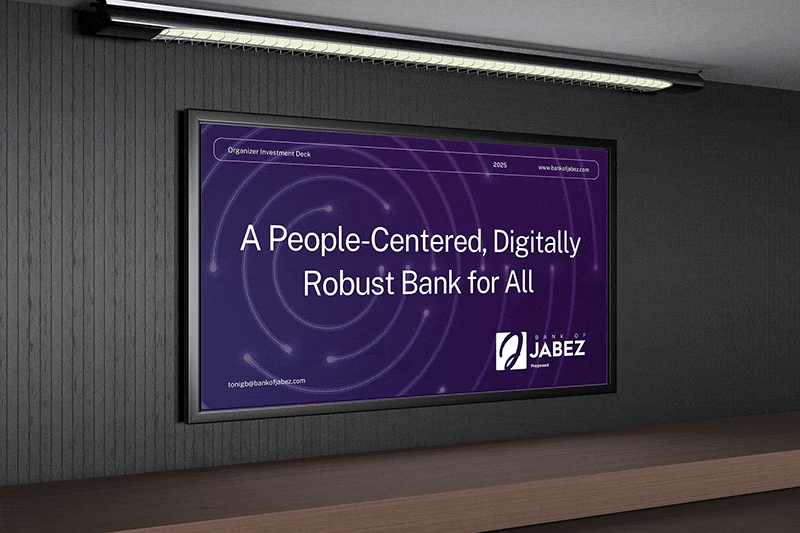The result was a polished, aligned fundraising ecosystem. The investor website functions as a digital due diligence hub – outlining the opportunity, market context, investment structure, and execution plan with clarity and authority. The matching deck mirrors that narrative for live presentations, reinforcing confidence through streamlined slides and strategic storytelling. Together, these assets repositioned conversations from “explaining the vision” to “discussing the investment,” giving Bank of Jabez a professional, compelling presence capable of attracting serious capital and advancing a mission-driven financial institution with long-term impact.